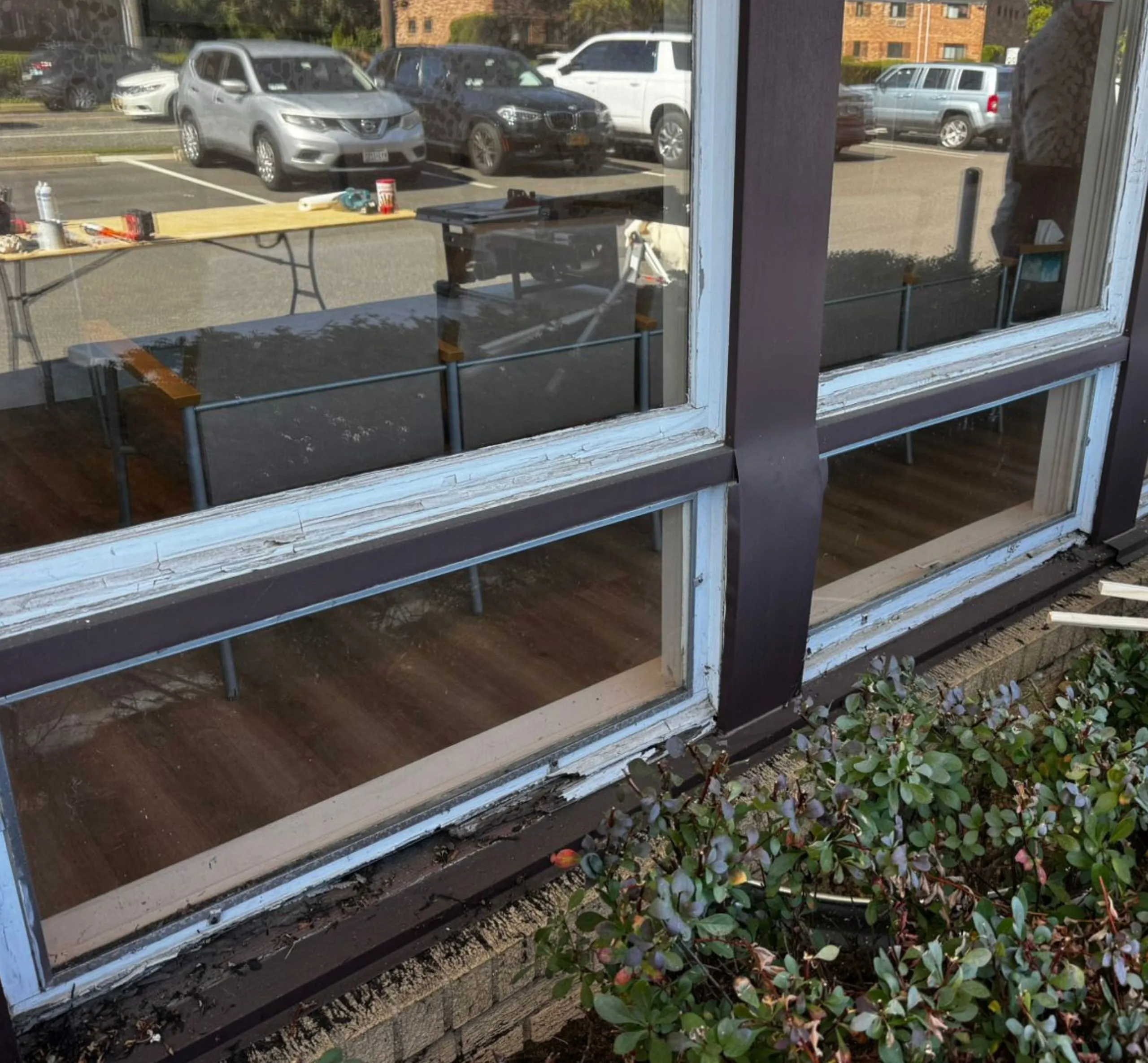 At Prestige Window Works, we recently completed a custom wood window restoration in Old Bethpage, NY that challenged our team’s craftsmanship and precision. The lower sections of this large commercial-style wood frame had suffered years of moisture exposure, resulting in deep rot and peeling paint. Instead of replacing the entire structure, we took a restoration-first approach — rebuilding the frame with durable, high-quality materials while maintaining the window’s original design.