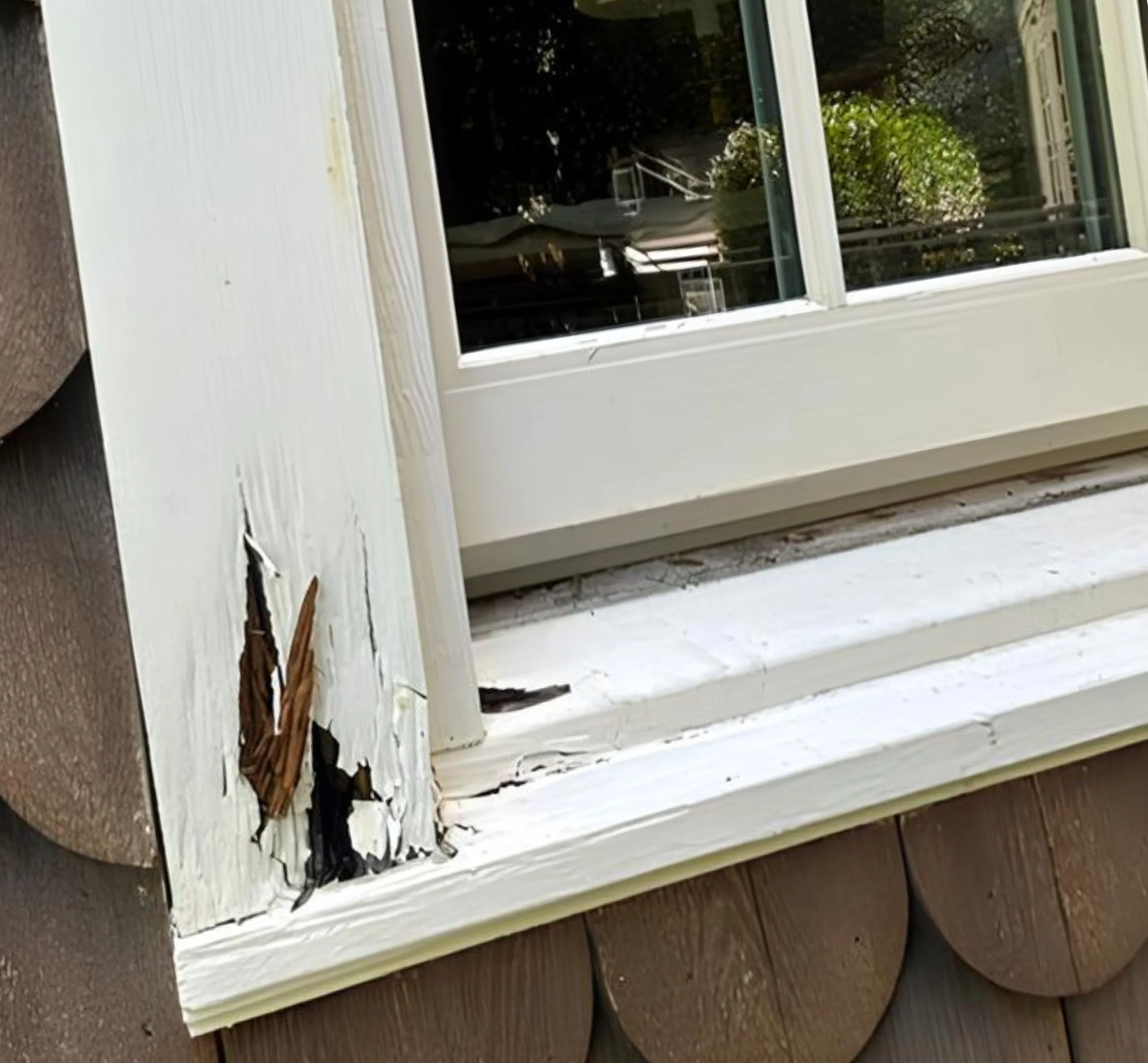 When we arrived at the property in Great Neck, NY, the Marvin wood window frame was showing severe deterioration. The bottom corner had rotted through, leaving exposed, splintered wood that not only weakened the frame but also put the entire sash at risk. Left untreated, this type of damage spreads quickly, especially in wood windows exposed to moisture and weather.