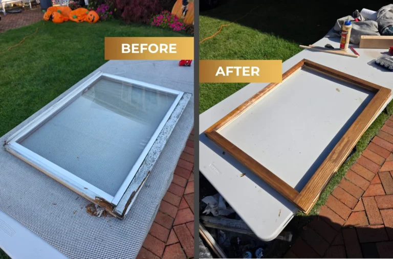 Look at the before and after — a perfect example of our detailed wood window restoration work in Old Bethpage, NY.